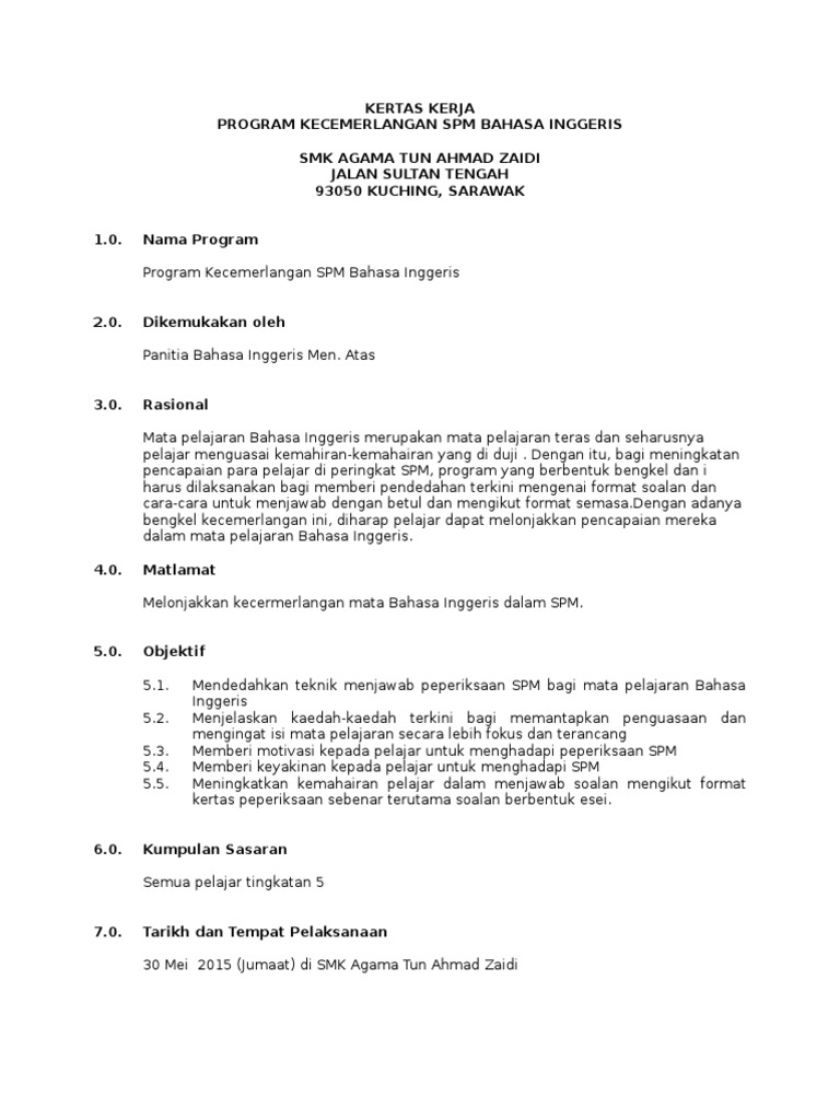 Laju pembangunan tersebut dipacu oleh penemuan minyak dan gas yang berlokasi di kecamatan ngasem kabupaten bojonegoro c. Kertas kerja program kesihatan sekolah rendah. Kod dan nama program / programme code & name. Bab 4 penutup 12bab ipendahuluan. Program kerja program kerja ekstrakurikuler komputer kelas x sma negeri 1 sukomoro tahun pelajaran 2011 / 2012 daftar isi 1 bab 3 program kerja 53.1 materi pembahasan 53.2 waktu pelaksanaan 113.3 target 116.